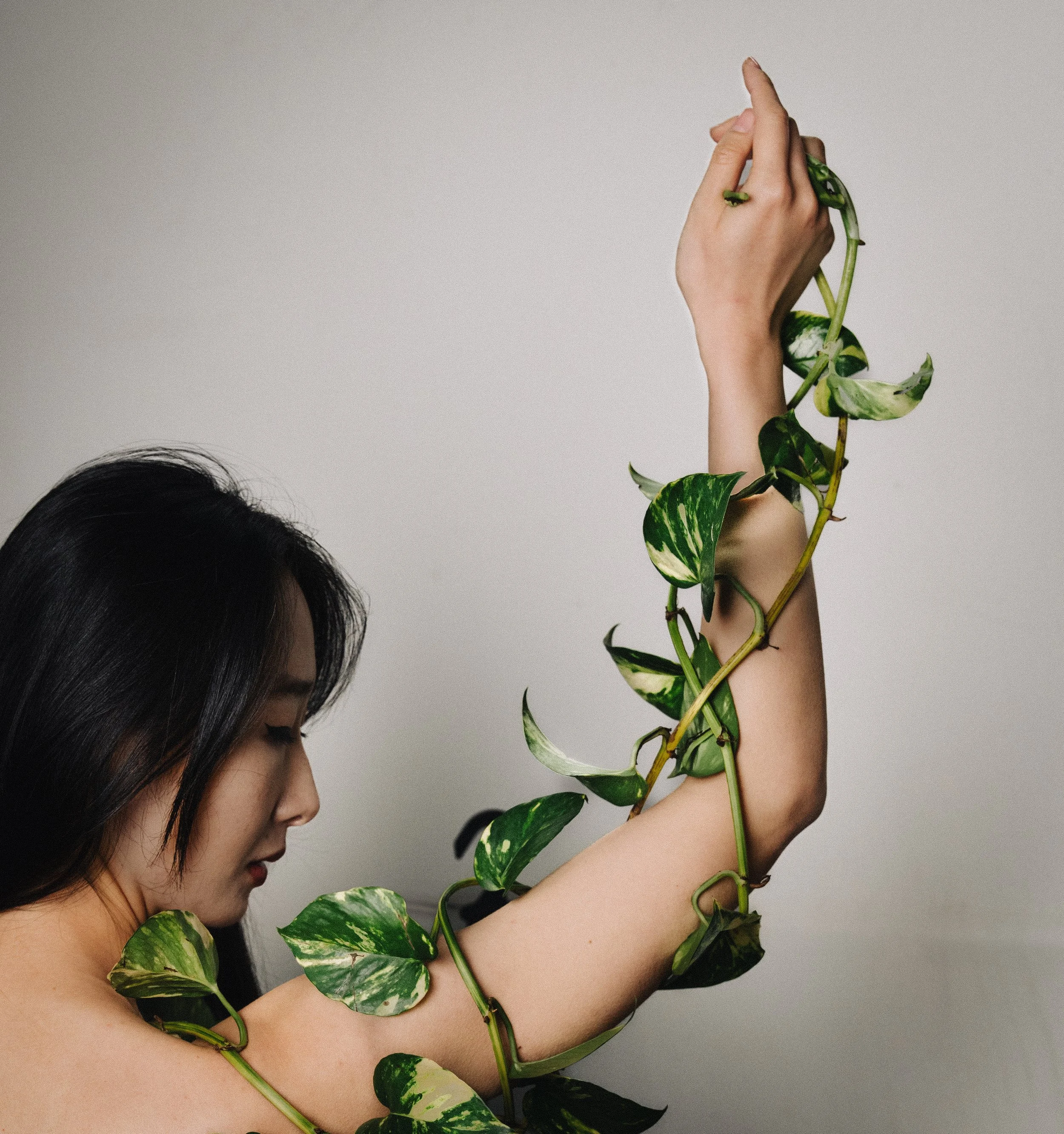 This collection is a portrait series blending fine art and editorial photography. Using natural elements like vines, flowers, and soft textures, it explores themes of femininity, beauty and confidence.
